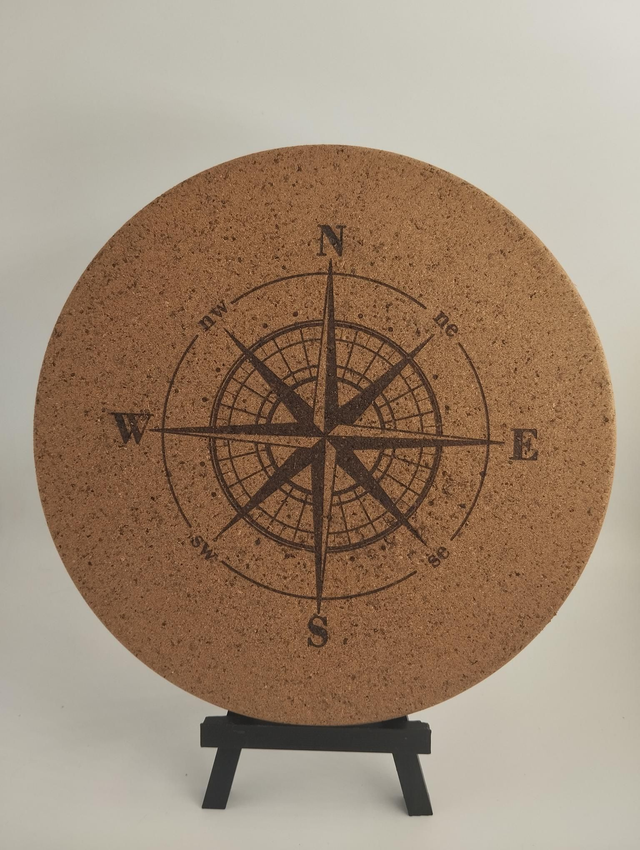 Apportez une touche d’élégance naturelle et originale à votre table avec ce magnifique dessous de plat en liège orné d’une rose des vents gravée. 🌍✨