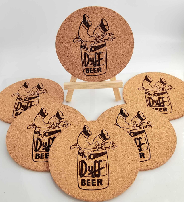 Je vends un lot de 6 dessous de verre en liège à l’effigie de la célèbre bière Duff (culte dans Les Simpson).
